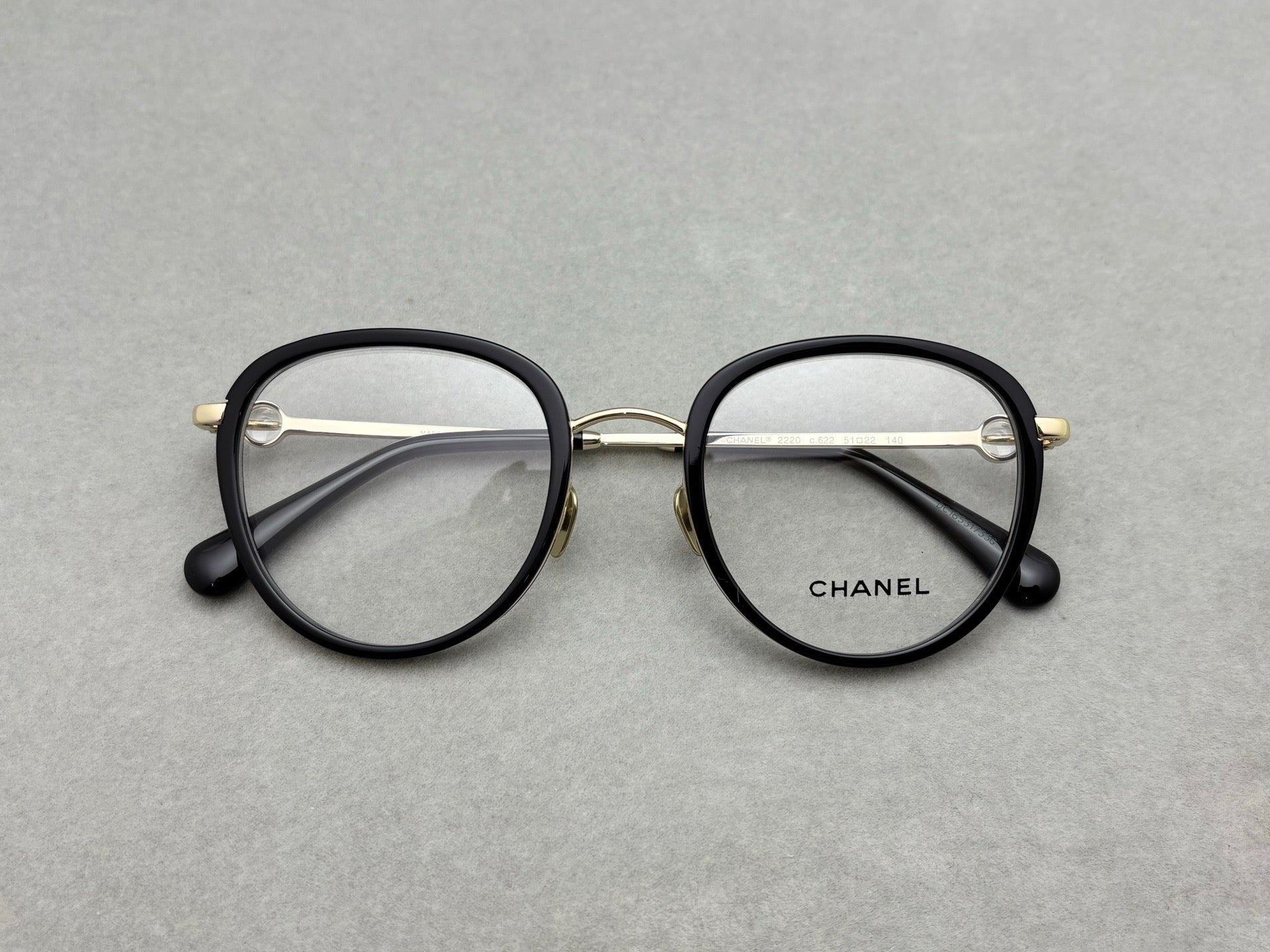 Timeless and chic – the Inspired Chanel 2220 eyeglasses combine classic round-oval frames with modern luxury details. Crafted with premium acetate and gold-tone metal temples, these frames bring a balance of elegance and comfort. Perfect for everyday wear, the oversized yet refined silhouette flatters all face shapes while delivering a sophisticated Parisian-inspired look.