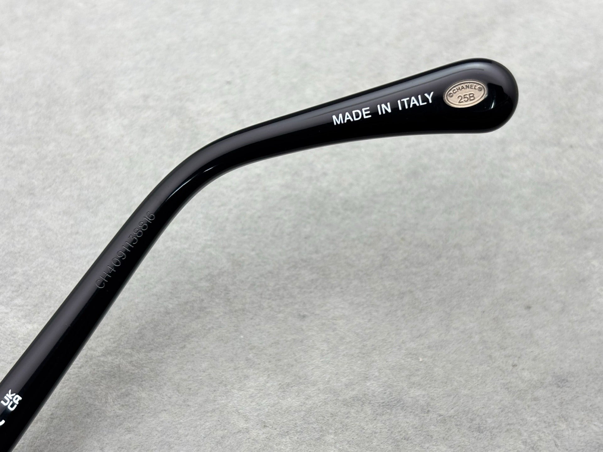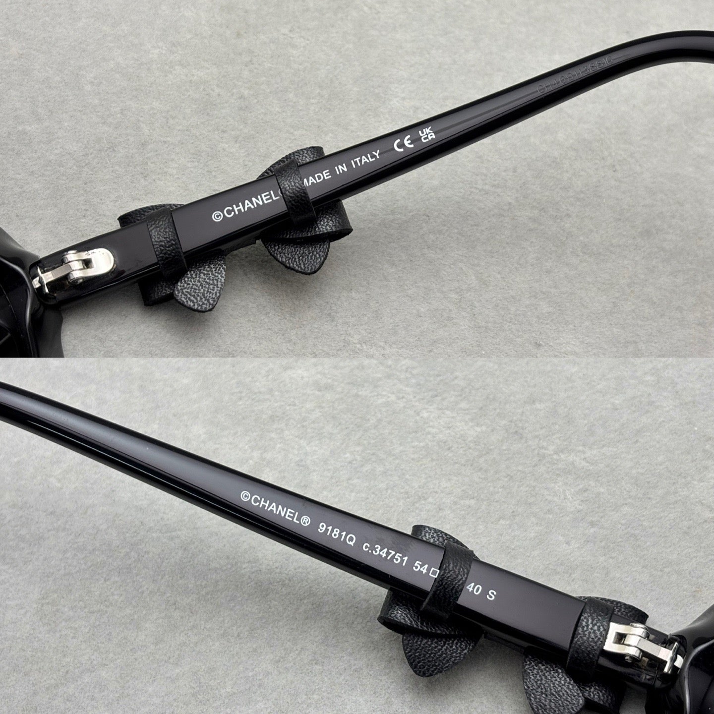 - Distinctive butterfly bow temple detail with leather finish