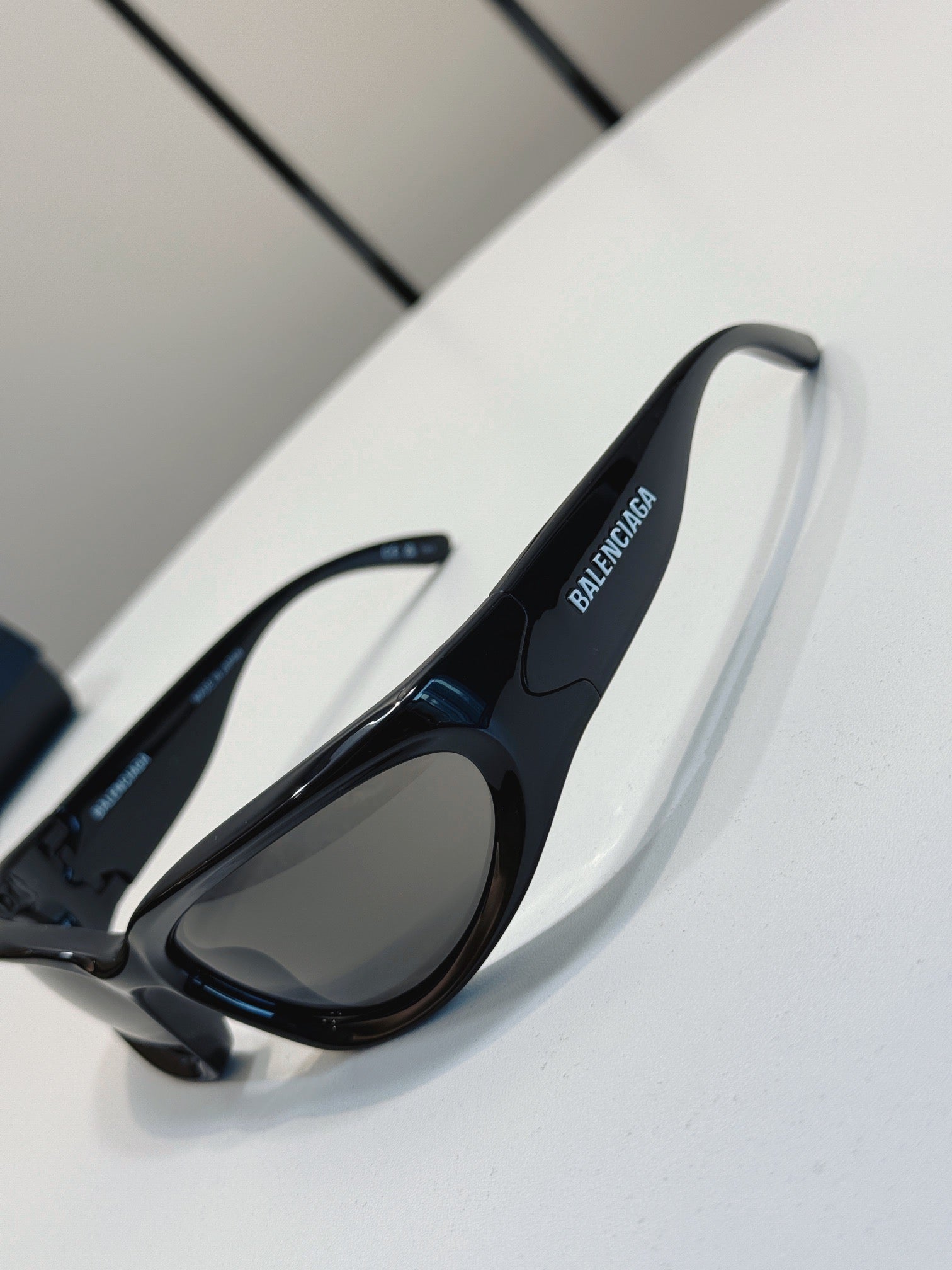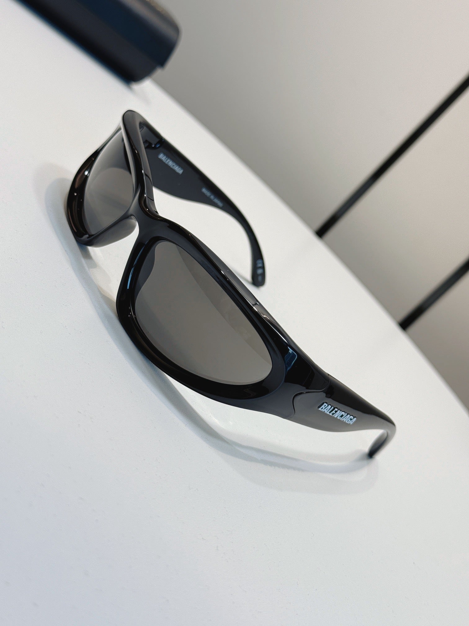 Step out in bold confidence with these Inspired Balenciaga BB0157S wrap-around sunglasses. Featuring a sleek retro silhouette, glossy black frame, and dark tinted lenses, this design channels futuristic streetwear vibes with everyday wearability.